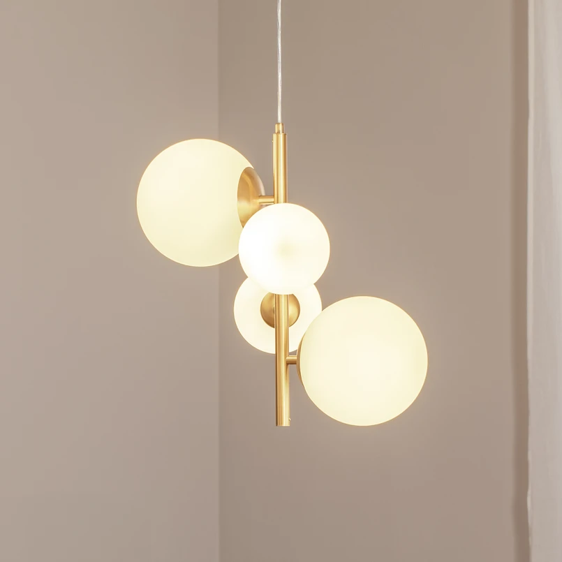 Die Hängeleuchte Joel, gefertigt aus hochwertigem Metall und Glas, vereint zeitlose Eleganz mit funktionaler Vielseitigkeit. Mit ihrem gebürsteten Messing-Finish und den weiß gefrosteten Glaselementen setzt sie stilvolle Akzente in jedem Wohnzimmer oder Esszimmer. Die vierflammige Konstruktion sorgt für eine gleichmäßige Ausleuchtung und schafft eine einladende Atmosphäre.