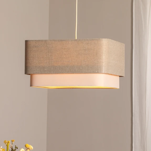 Entdecken Sie Kwadro Duo, eine Hängeleuchte, die nicht nur durch ihr ansprechendes Design in Creme und Beige überzeugt, sondern auch durch ihre hochwertige Verarbeitung aus Leinen. Diese Leuchte wurde in Europa gefertigt und steht somit für lokale Qualität und kurze Lieferwege.