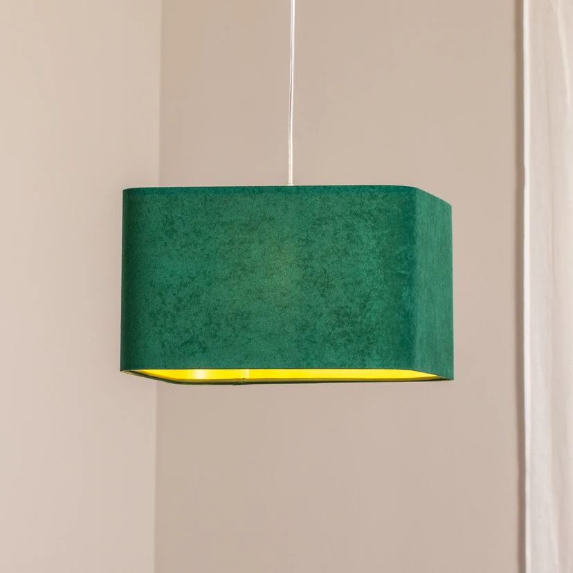 Entdecken Sie Kwadro, eine Hängeleuchte, die nicht nur durch ihr weiches Velourgewand mit goldener Innenseite besticht, sondern auch durch ihre europäische Fertigung. Diese Leuchte ist eine Bereicherung für diverse Räume – ob Wohnzimmer, Esszimmer oder Schlafzimmer, sie schafft überall eine Atmosphäre, die von Gemütlichkeit bis hin zu inspirierender Produktivität reicht. Kwadro ist zwar nicht mit einem integrierten Dimmer ausgestattet, jedoch lässt sie sich problemlos über einen externen Dimmer anpassen, um das Lichtambiente Ihren Wünschen entsprechend zu gestalten.