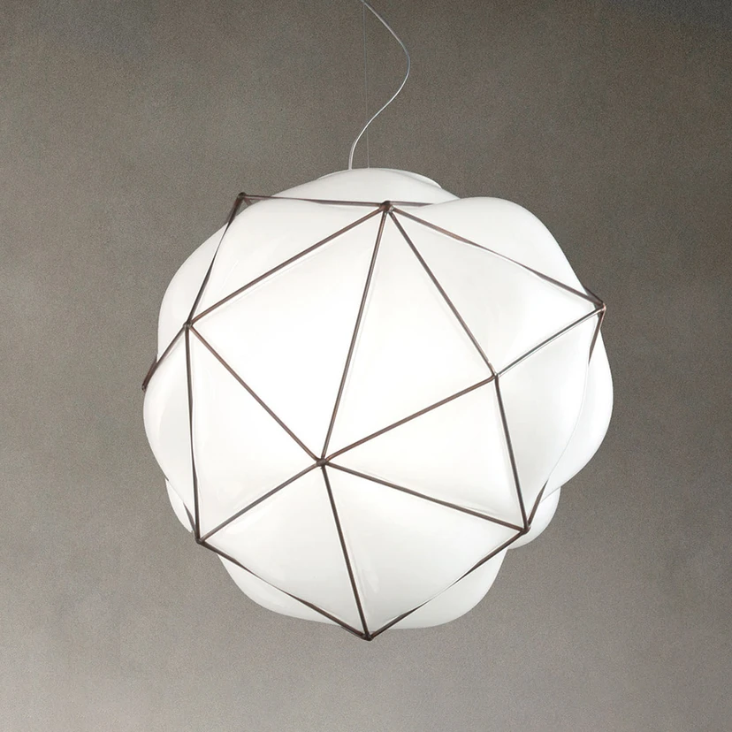 Für die Hängeleuchte Semai haben sich die beiden italienischen Designer Alberto Saggia & Valerio Sommella etwas ganz Besonderes einfallen lassen: Aus mundgeblasenem Glas, das hier frei in einen Metallkäfig geblasen wurde, ist ein Glasschirm entstanden, der seinesgleichen sucht. Dieser innovative Ansatz macht aus jeder Hängeleuchte Semai ein unverwechselbares Unikat.