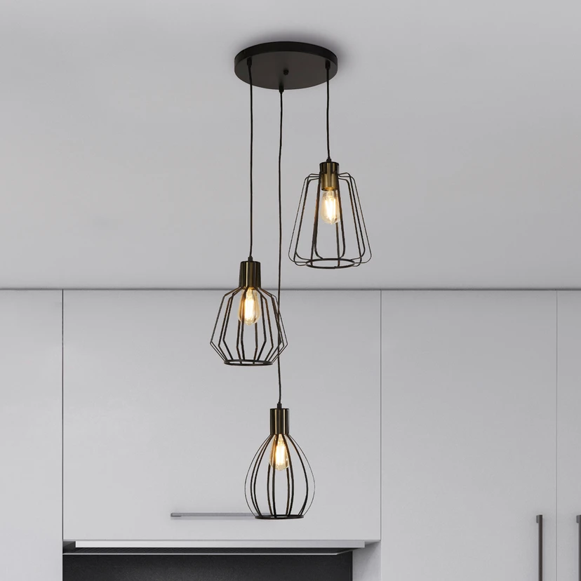 Die dreiflammige Hängeleuchte Senator mit den attraktiv gestalteten Käfigschirmen präsentiert sich in zeitlosem Design. Gefertigt aus robustem Flussstahl, setzt sie mit ihrer Kombination aus sandschwarzer Oberfläche und Akzenten in messingfarbenem Antik-Finish stilvolle Akzente. Die dreiflammige Konstruktion sorgt für eine gleichmäßige Lichtverteilung und schafft eine angenehme Atmosphäre, die sich ideal für den Einsatz im Wohnzimmer eignet.