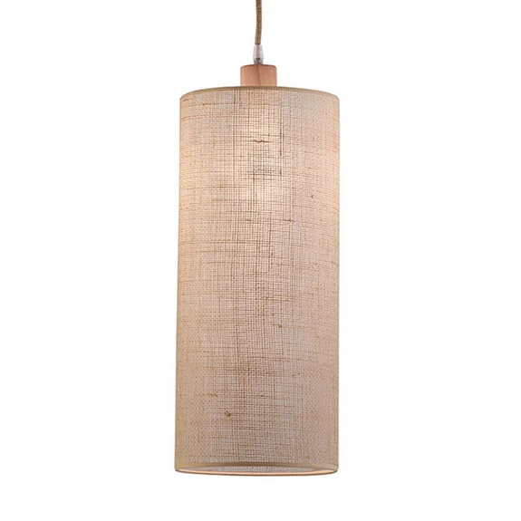 Beige Hängeleuchte Senso mit Schirm aus Holz und Leinen Der Schirm der Hängeleuchte Senso hat eine schmale Form und ist mit einem Leinenstoff versehen. Der Stoff ist auf einem Holzgeflecht befestigt, die Holzdetails finden sich auch in der Abhängung wieder. So entsteht ein ansprechender Look, der zu skandinavisch oder auch rustikal ausgerichteten Einrichtungen passt. Außerdem verleiht er dem Raum einen natürlichen Look. Kleine Tische oder Tresen sind genau die richtige Umgebung für diese Hängeleuchte. Da die Leuchte über eine E27-Fassung verfügt, kann sie mit jedem beliebigen, auch dimmbaren E27-Leuchtmittel bestückt werden.
