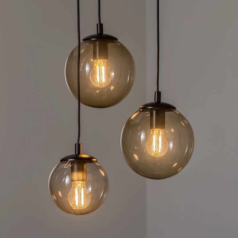 Hängeleuchte Smoky mit Glasschirmen, dreiflammig