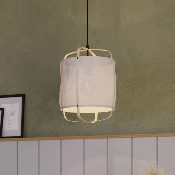 Hängeleuchte Surfleet mit Bambus-Leinen-Schirm