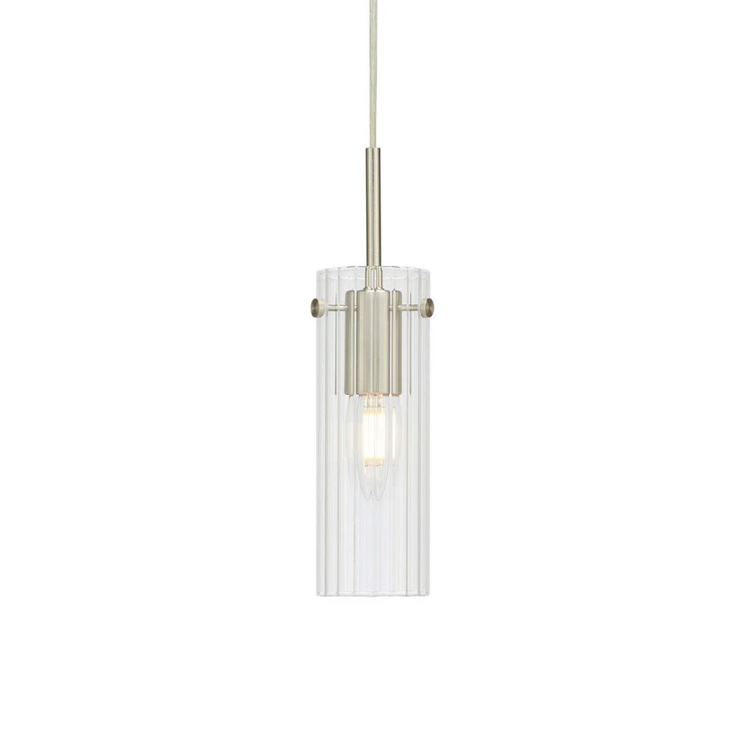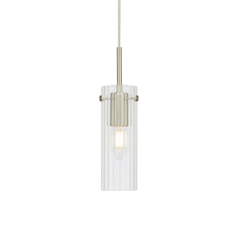 Hängeleuchte Tibia, Stecker, klar/nickelfarben, Ø 7 cm
