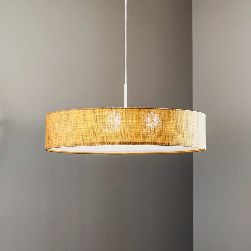 Die Hängeleuchte Turda vereint modernes Design mit hochwertigen Materialien wie Textil, Papier PVC und Stahl. Ihre elegante Farbgebung in Gold und Weiß macht sie zu einem Blickfang in jedem Raum, sei es im Wohnzimmer, in der Küche oder im Esszimmer. Die Leuchte besticht durch ihre Vielseitigkeit und die Möglichkeit, die Lichtintensität über einen externen Dimmer anzupassen, um die gewünschte Atmosphäre zu schaffen.