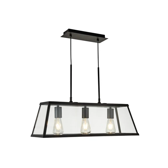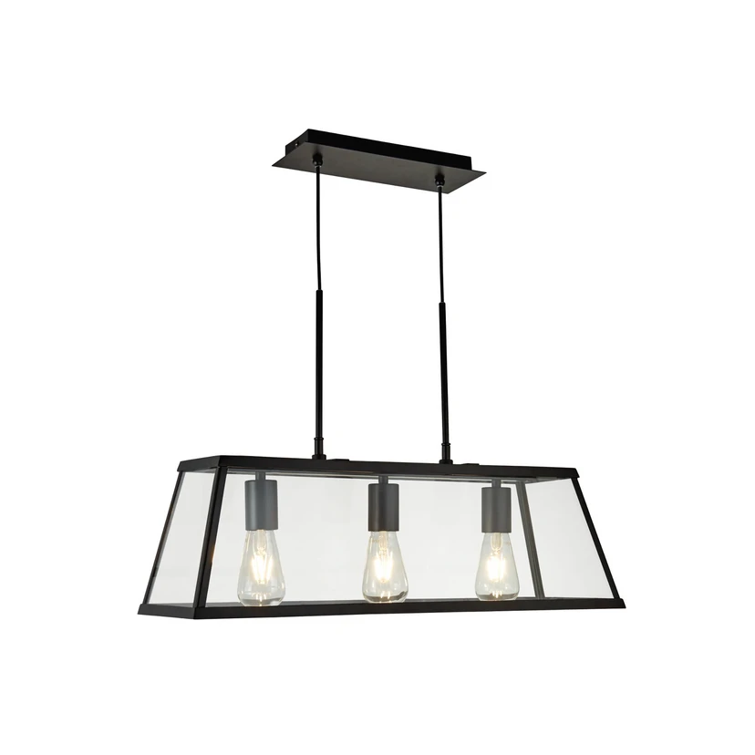 Hängeleuchte Voyager, 3-flammig, schwarz, Glas, 65 cm, E27