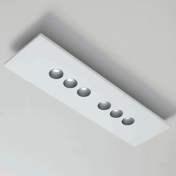 Die LED-Deckenleuchte Confort ist ein Original-Design des italienischen Leuchtenherstellers Icone, der bekannt ist für seine klare und minimalistische Formensprache. Dies wird auch bei der formschönen Deckenleuchte Confort auf den ersten Blick sichtbar: Der lineare, rechteckige Leuchtenkörper besteht aus weiß lackiertem Aluminium mit farbig kontrastierten Reflektoren, die in ihrer Form kleinen Trichtern ähneln. In diesen Reflektoren sind die eingebauten LEDs untergebracht, die ihr warmweißes Licht durch die spezielle trichterähnliche Form nahezu blendfrei nach unten abgeben.