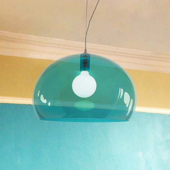 Die Pendellampe FL/Y aus dem Hause Kartell ist ein typischer Allrounder: Ob in der Küche, im Esszimmer oder im Wohnzimmer - eine Leuchte mit dem Design und der Funktionalität von FL/Y kann man überall gebrauchen. Der Schirm ist weder Kugel noch Halbkugel, der Schnitt wurde etwas unterhalb der Mitte gemacht. Dies bewirkt, dass das Licht noch besser gesammelt und die darunter liegende Fläche gezielter ausleuchtet wird. Farbenfroh und vielseitig sind die vielen Varianten von FL/Y, deren Schirm aus Kunststoff besteht - eine Selbstverständlichkeit bei einem Produkt von Kartell.