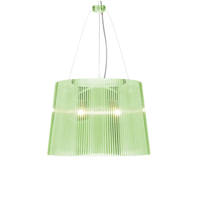 Dieses Schmuckstück stammt aus der Feder von Ferruccio Laviani, der bereits über 20 Entwürfe zusammen mit dem Designerleuchten-Hersteller Kartell entwickelt hat. Das Thema Transparenz steht für das italienische Unternehmen im Mittelpunkt. Zum einen sind die klaren, durchscheinenden Leuchten und Gegenstände originell und sind mittlerweile zum Markenzeichen des Betriebs geworden. Zum anderen ist Kartell besonders offen und gibt Einsicht über die Herkunft seiner Materialien, denn die Werkstoffe sind zertifiziert und recycelbar. Seit der Gründung der Firma steht Nachhaltigkeit an erster Stelle bei Kartell.