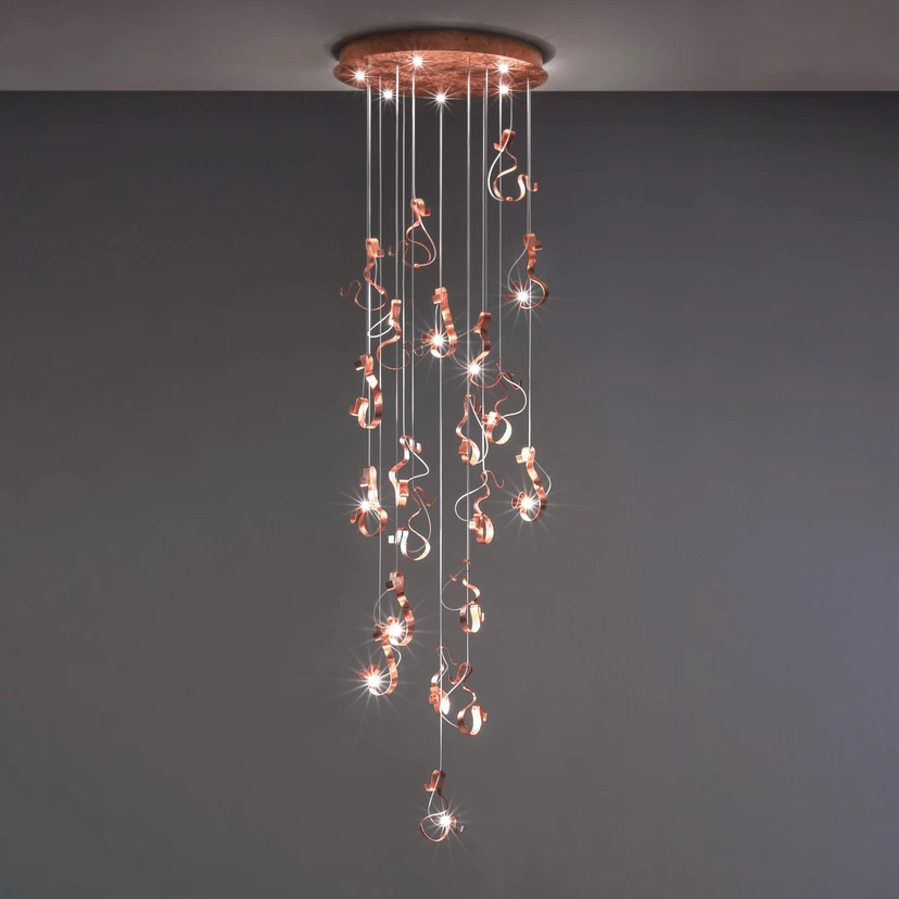 Knikerboker Curve LED-Hängeleuchte, 20fl, kupfer