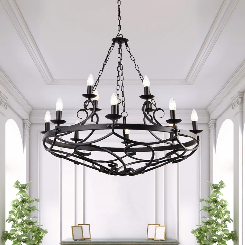 Kronleuchter Cartwheel III, 12-flg., Ø 89cm, schwarz, Metall