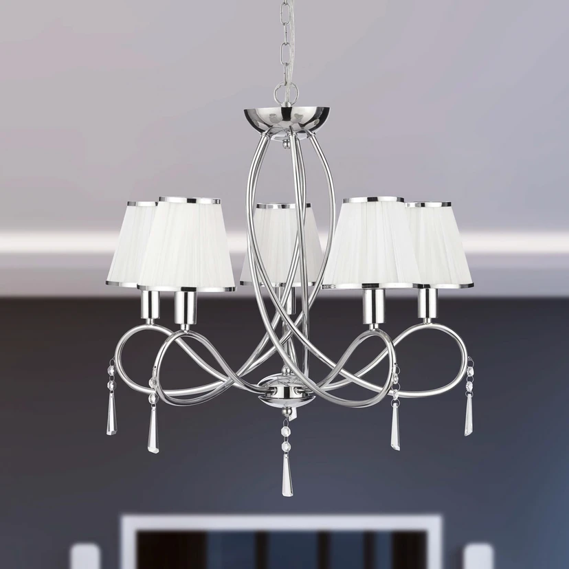 Kronleuchter Simplicity, 5-flammig, Stoff, chrom/weiß, E14
