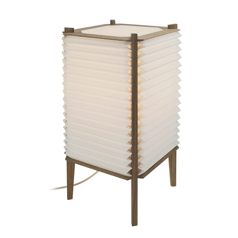 Tischleuchte Bee Hive mit handgefaltetem Schirm und Eichenholzgestell