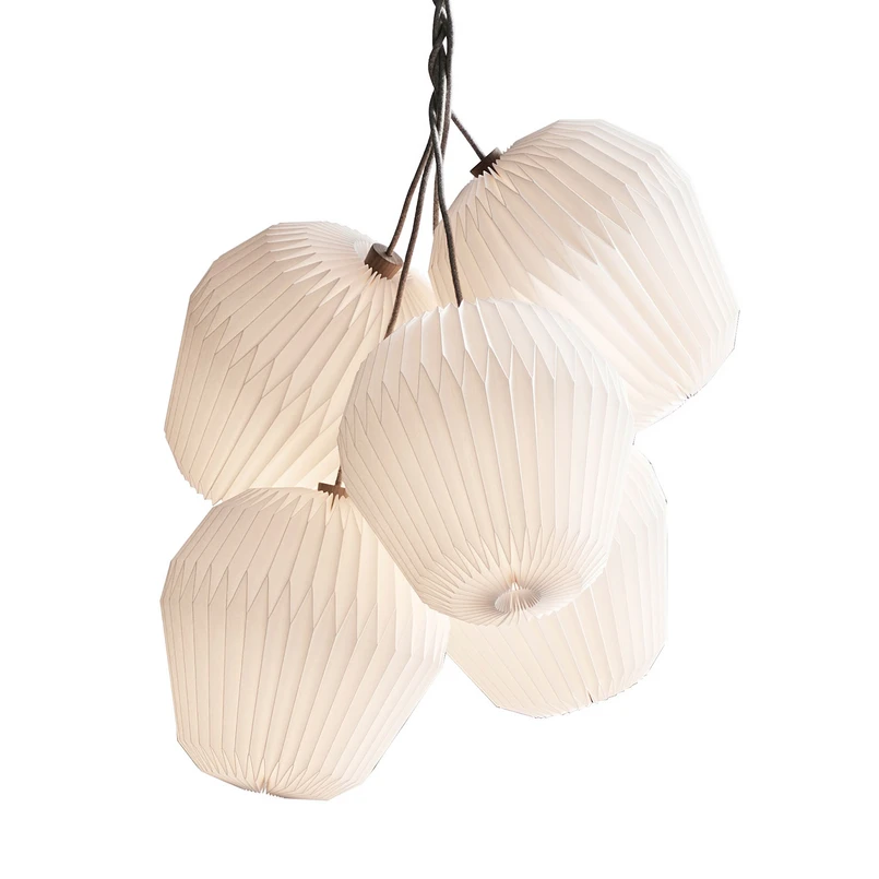 Rustikal, natürlich, organisch - die mehrflammige Hängeleuchte The Bouquet hängt in aufregender Form von der Decke herab und erinnert an ein Bündel Tulpen, von denen sich die Designerin Sinja Svarrer Damkjær hat inspirieren lassen. Sie beobachtete auf einer Italienreise die Blumenhändler auf einem Markt. Durch ihren Hang zur Handwerkskunst lag es nahe, die Schirme von Hand zu falten, denn das dänische Unternehmen LE KLINT ist durch den gefalteten Lampenschirm von Firmengründer P. V. Jensen-Klint weltweit bekannt. Keine Maschine kann die kreuzplissierten Schirme so herstellen, wie sie in Dänemark durch die Falterinnen von LE KLINT mit purer Handwerkskunst gefertigt werden.