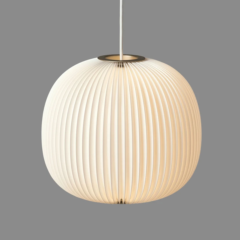 Die Hängelampe Lamella 3 ist ein Produkt des dänischen Leuchtenherstellers Le Klint, dessen Markenzeichen handgefertigte Faltenschirme sind. Auch Lamella 3, der Entwurf der beiden jungen Designer Hallgeir Homstvedt und Jonah Takagi, die Designstudios in Oslo und Washington betreiben, hat einen solchen Faltenschirm. Dazu wird die leicht glänzende und transluzente Lampenfolie per Hand gefaltet und in Form gebracht. Dieses Kunsthandwerk erfordert eine dreijährige Ausbildung und wird bei Le Klint nach wie vor manuell ausgeführt, da selbst modernste Maschinen nicht in der Lage sind, die Technik so auszuführen, wie die Menschenhand es kann.
