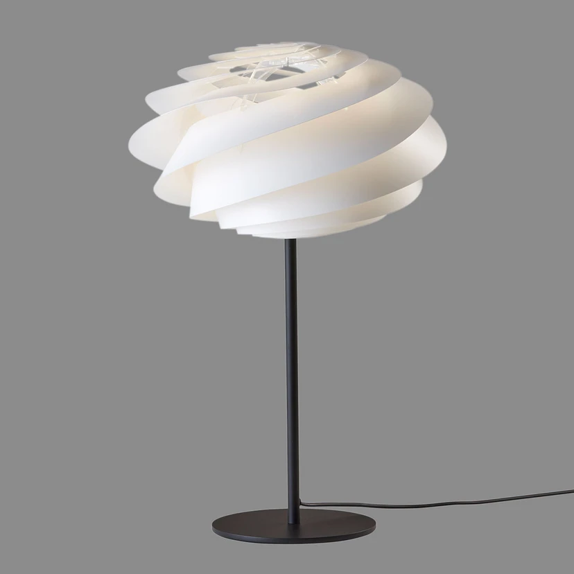 Designer-Tischleuchte Swirl mit gedrehtem Leuchtenschirm in Weiß