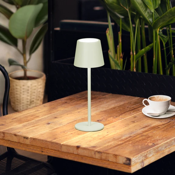 LED-Akku-Tischleuchte Roxi, mintgrün, Metall, IP54, Dimmer