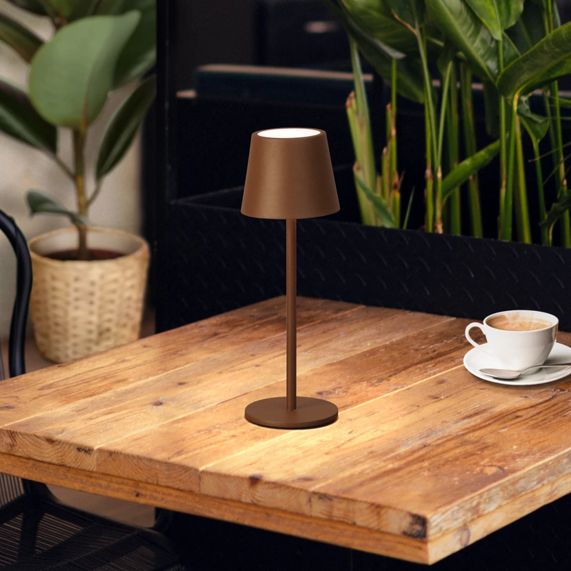 LED-Akku-Tischleuchte Roxi, rostfarben, Metall, IP54, Dimmer