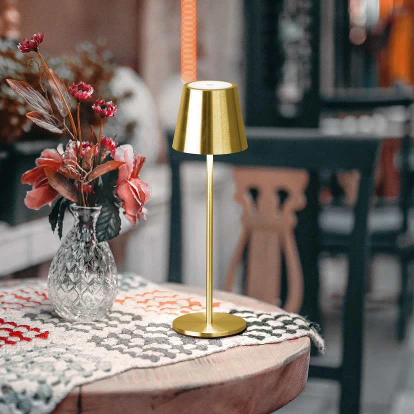 LED-Akku-Tischleuchte Viletto, messingfarben, IP54