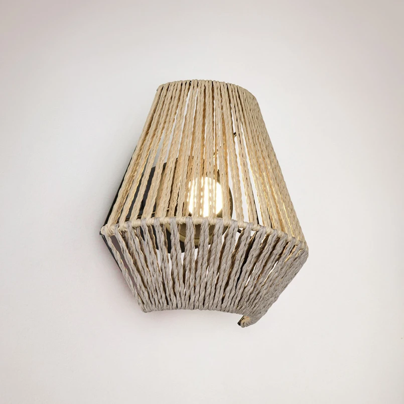 LED-Akku-Wandleuchte Lira, braun, Papiergarn, Touch, H 19 cm
