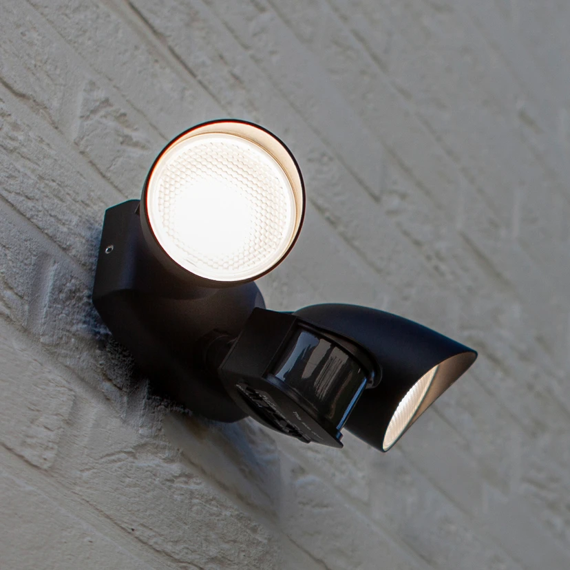 Zweiflammiger LED-Außenwandstrahler Shrimp mit Bewegungs- und Dämmerungssensor, 4.000 K, IP54