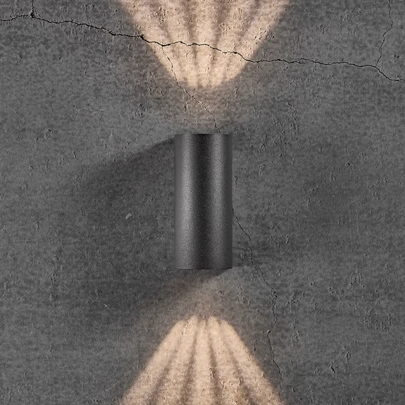 Durch die mitgelieferten Schablonen kann der Lichtauslass nach oben und unten auf drei verschiedene Arten verändert werden. Die Schablonen lassen sich einfach einschieben und fixieren. Die LED-Außenwandleuchte Asbol eignet sich auch zur Parallelschaltung.