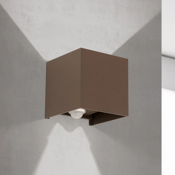 LED-Außenwandleuchte Cube-S, corten, Metall, Sensor