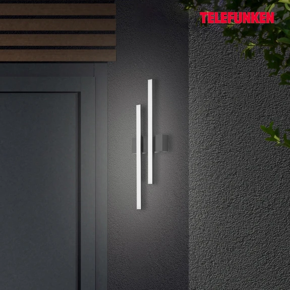 Für die Erhellung jedes Außenbereiches ist diese Wandleuchte ganz ausgezeichnet einsetzbar. Die LED-Wandleuchte Graz erweitert das Lichtkonzept moderner Umgebungen durch ihr tolles Design auf stilvolle Art und Weise. Sie ist mit der Schutzart IP44 versehen und infolgedessen vor Eindringen fester Fremdkörper mit einem Durchmesser größer als 1 mm und Spritzwasser gesichert. Die Außenwandleuchte bietet mit zwei zur Front gerichteten Lichtquellen direktes Licht. Die Lampe aus Metall und Kunststoff sorgt für eine tolle Optik und schenkt Ihren Outdoor-Bereichen zusätzlich Ambiente.