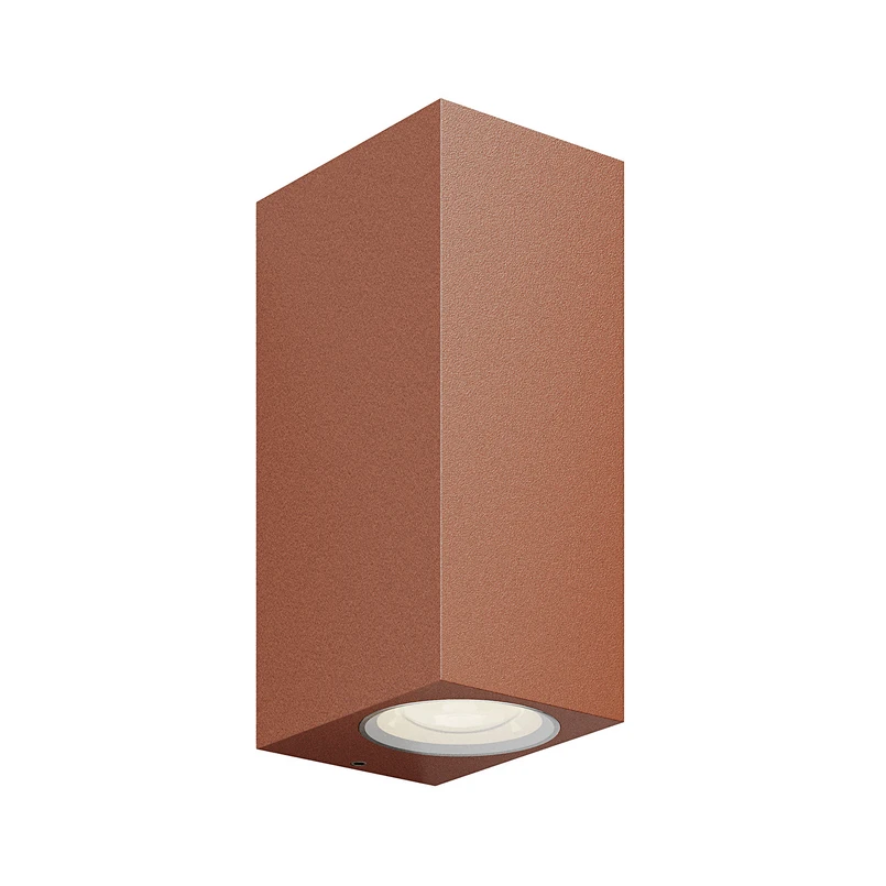 Mit ihrer eckigen Form passt die Außenwandleuchte Tavi zu vielen Umgebungen, die rostbraune Oberfläche verleiht ihr indes einen etwas rustikaleren Charakter. Der Lichtaustritt erfolgt nach oben und unten, beide Male in einem vergleichsweise breiten Winkel von ungefähr 90 Grad. Die LEDs sind aus dem Hause Bridgelux und sie sorgen bei einer geringen Leistung für einen vergleichsweise hellen Lichtstrom, damit die Stromrechnung nicht unnötig in die Höhe geht.