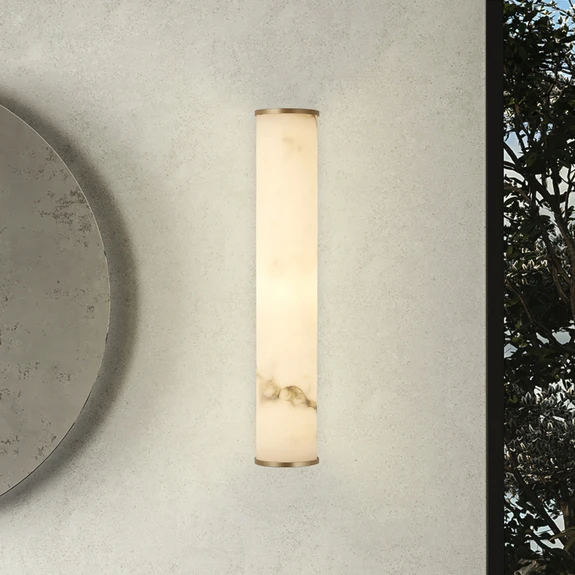 LED-Bad-Wandlampe Wales, gold/marmoriert, 35 cm Stahl/Resin