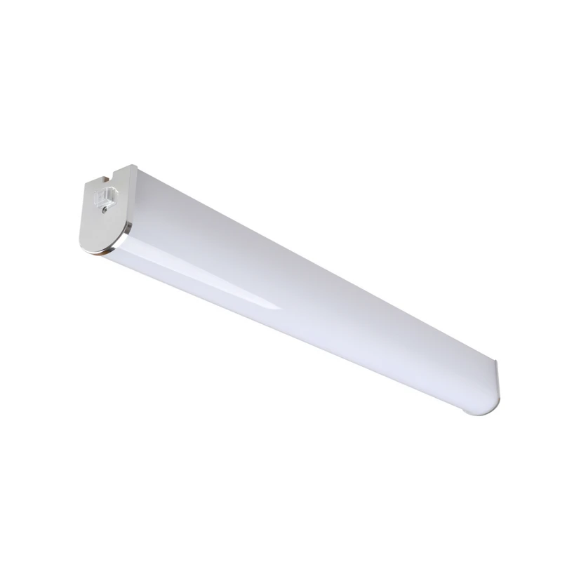 Die lang und schmal gestaltete LED-Wandleuchte Lind strahlt universalweiße Beleuchtung aus, die sich über den Schalter am Gehäuse ein- und ausschalten lässt. Der Diffusor aus Polycarbonat sorgt für blendfreie und gleichmäßige Lichtabstrahlung. Die Leuchte ist dank Schutzart IP44 perfekt für den Einsatz im Bad oder anderen Feuchtbereichen geeignet.