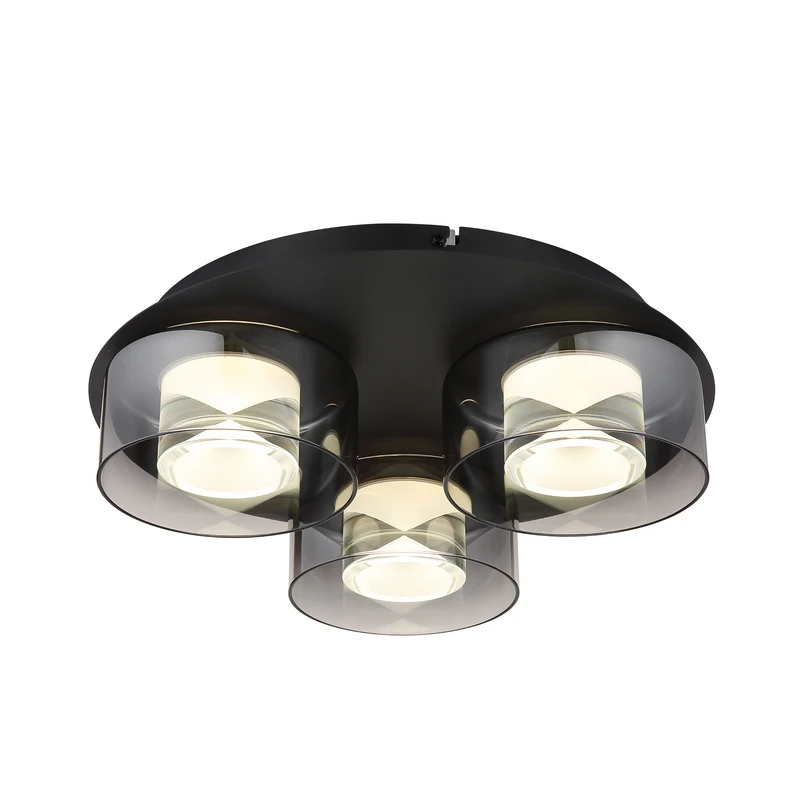 LED-Deckenlampe Belinda, Ø 38 cm, rauchgrau, 3-flg., Glas