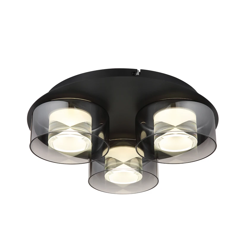 Dank der dreiflammigen Konstruktion bietet die Deckenlampe Belinda eine gleichmäßige Lichtverteilung, die jeden Raum in ein harmonisches Licht taucht. Die Kombination aus klaren und schwarzen Akzenten unterstreicht das moderne Design und macht sie zu einem vielseitigen Element in verschiedenen Einrichtungsstilen. Die fest verbauten LEDs garantieren eine wartungsfreie Nutzung und tragen zur Energieeffizienz bei, ohne Kompromisse bei der Helligkeit einzugehen.
