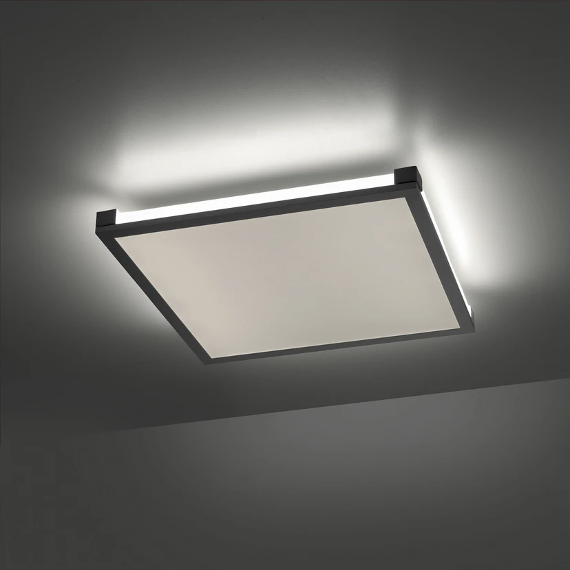 Ein modernes Erscheinungsbild und eine zeitlose Farbgestaltung prägen das Design der LED-Deckenlampe Mario, die sich durch die mitgelieferte IR-Fernbedienung bequem schalten lässt. Angefangen von selbst kreierten Farbrezepten über unterschiedliche Helligkeitsstufen bis hin zu vorinstallierten Szenerien (z.B. Waldspaziergang oder Sonnenuntergang) sind über die Fernbedienung einstellbar, so dass das Licht individuell angepasst werden kann. Durch das graue Rahmenkonstrukt in Kombination mit den satinierten Diffusorscheiben fügt sich die Deckenleuchte in zahlreiche Einrichtungsstile ein.