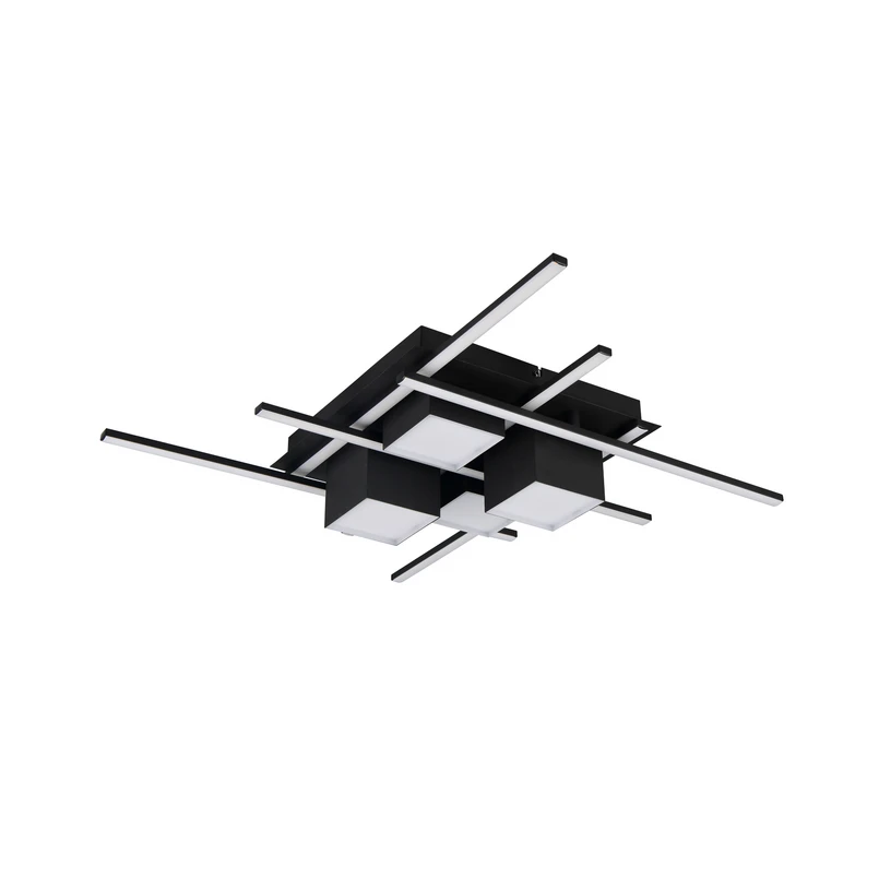 Die LED-Deckenlampe Roger vereint modernes Design mit funktionaler Vielseitigkeit. Gefertigt aus Metall, besticht sie durch ihre moderne Form mit langen, stabförmigen und vier quadratischen Lichtelementen. Die Leuchte passt in viele Einrichtungen. Die integrierte LED-Lichtquelle bietet eine beeindruckende Farbtemperaturspanne von warmweißem Licht bis hin zu tageslichtweißer Beleuchtung, die dank der mitgelieferten Fernbedienung stufenlos angepasst werden kann. Diese Flexibilität ermöglicht es, die Beleuchtung optimal an die jeweilige Stimmung oder Aktivität anzupassen.