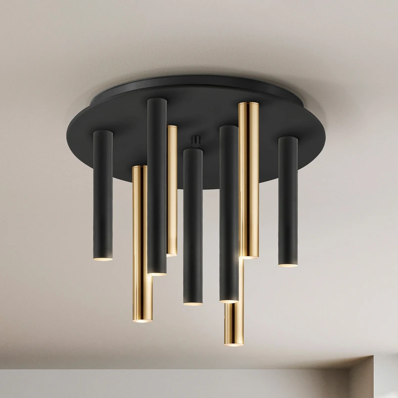 LED-Deckenlampe Varas in Schwarz matt und Gold, 9-flammig