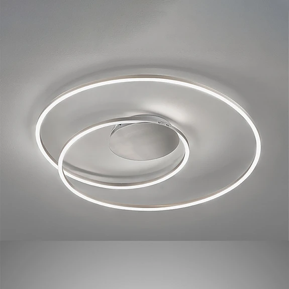 Ein spiralförmiges, modernes Design und eine komfortable und flexible Lichtgestaltung zeichnen die LED-Deckenleuchte Holy aus. Die Leuchte aus Metall ist mit LEDs hinter der opalweißen Abdeckung bestückt, die sich in der Lichtfarbe von warmweiß bis tageslicht verstellen und auch stufenlos dimmen lassen. Die Einstellungen werden bequem über die mitgelieferte Fernbedienung vorgenommen.