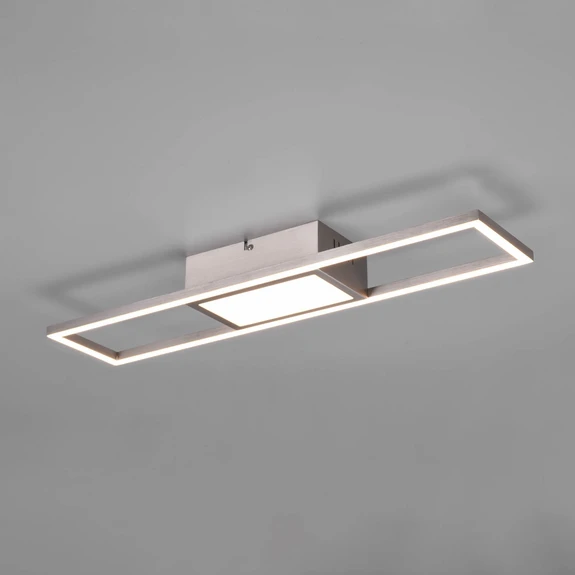 Die LED-Deckenleuchte Rigido überzeugt gerade in modernen Umgebungen mit ihrer offenen Rechteckform und der matten Nickeloptik. Funktional ist die Deckenlampe sehr vielseitig: Mit der beiliegenden Fernbedienung lässt sie sich schalten, dimmen und von warmweißem bis tageslichtweißem Licht regeln. Dank der Memoryfunktion steht die zuletzt gewählte Einstellung nach dem erneuten Einschalten wieder zur Verfügung.