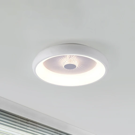 Mit der CCT-Farbtemperatursteuerung können Sie den Lichtton von warmweißem Licht (2.700 K) bis zu universalweißem Licht (5.000 K) individuell einstellen. Schaffen Sie eine gemütliche Atmosphäre oder erhellen Sie kraftvoll Ihren Raum - die Wahl liegt ganz bei Ihnen. Ein besonderes Highlight ist der wunderschöne Kristalleffekt in der Mitte der Leuchte. Dieser sorgt für ein faszinierendes Lichtspiel. Die Lichtquelle im Zentrum und der äußere Ring lassen sich zudem separat schalten.