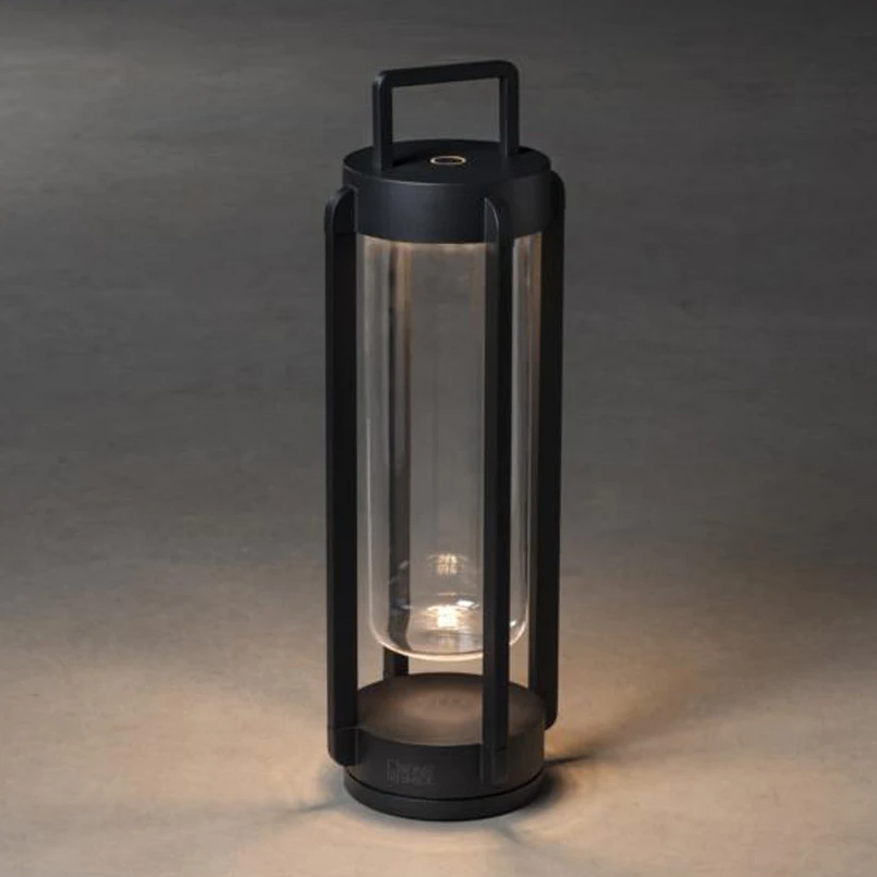 Das Grundgerüst der Laterne bildet schwarzes Aluminium. Im Inneren der Leuchte befindet sich ein Glasschirm, der von massiven Aluminiumstreben umgeben ist. Durch den wertigen Materialmix und modernen Stil besitzt Otranto einen ganz besonderen Charakter. Zudem besticht sie durch ihre verbaute Technologie. Der integrierte und leistungsfähige Akku ermöglicht einen flexiblen Einsatz, ganz unabhängig von einer Steckdose. Zusätzlich kann die Lichttemperatur in zwei Stufen und die Helligkeit in drei Stufen über einen kleinen Schalter am Laternenkopf eingestellt werden, so dass sich unterschiedliche Lichtstimmungen realisieren lassen.