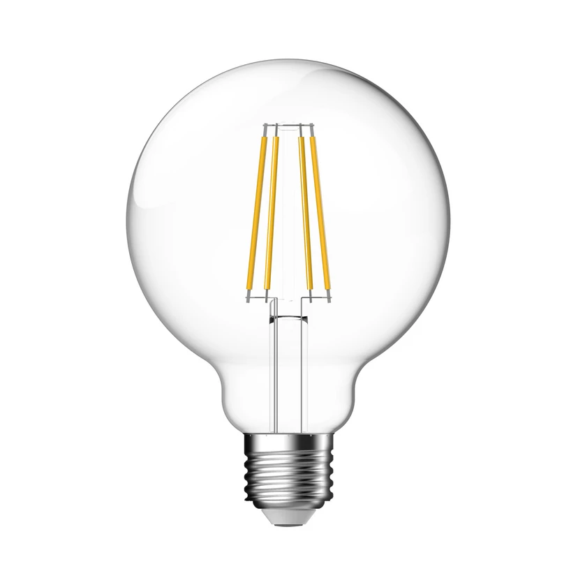 Die LED-Globelampe fällt durch ihre außergewöhnliche Form und die Filamentoptik im Innern ins Auge, die eine dekorative Wirkung entfaltet. Die Lampe kommt besonders gut in offen gestalteten Leuchten oder in Lampenfassungen zur Geltung. Das Licht wird vollumfänglich (360°) abgestrahlt. Die Globelampe ist Teil des Nordlux Smart Systems und lässt sich bequem per Smartphone oder Tablet steuern. Über die Nordlux Smart Light App wird die Lampe in das System eingebunden, außerdem können darüber Einstellungen konfiguriert und aktiviert werden. Die Globelampe ist dimmbar und die Lichtfarbe kann von warm- zu tageslichtweiß verändert werden.