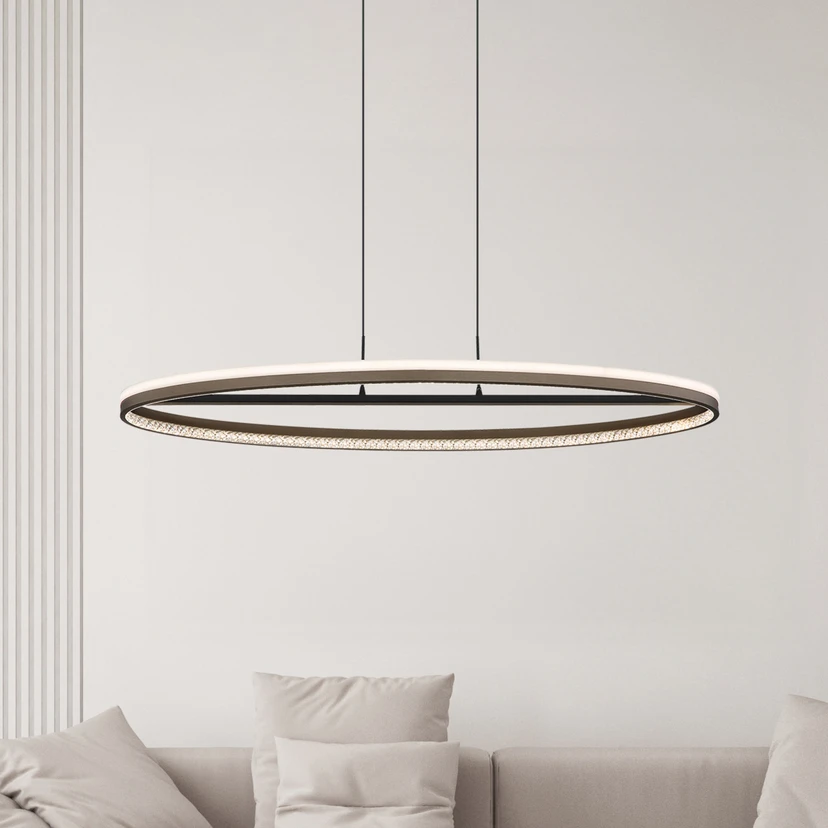 Die LED-Hängelampe Della vereint modernes Design mit funktionaler Vielseitigkeit. Gefertigt aus hochwertigem Aluminium, Metall und Kunststoff, fügt sie sich nahtlos in zeitgemäße Wohnräume wie Wohnzimmer, Esszimmer und Küche ein. Die dunkelgraue Farbgebung in Kombination mit schwarzen und opalen Akzenten verleiht der Lampe eine elegante und zugleich zurückhaltende Ästhetik.