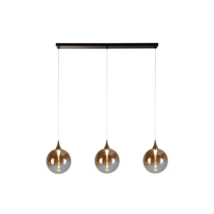 Die dreiflammige LED-Hängeleuchte Alchemy mit braun getönten Glasschirmen ist eine atemberaubende Balkenleuchte, die sich perfekt für eine Küche, ein Esszimmer oder eine Hausbar eignet. Sie besteht aus drei interessanten LED-Lichtquellen, die von wunderschönen Braunglasschirmen umhüllt sind. Die exquisiten Ombre-Braunglastöne erzeugen einen auffälligen visuellen Effekt. Goldene Endstücke sorgen für einen Hauch von Luxus, während der schwarze Baldachin einen schönen Kontrast bildet. Diese vielseitige Pendelleuchte bietet eine Rundumbeleuchtung und verwandelt jeden Raum in eine Oase einladender Atmosphäre.