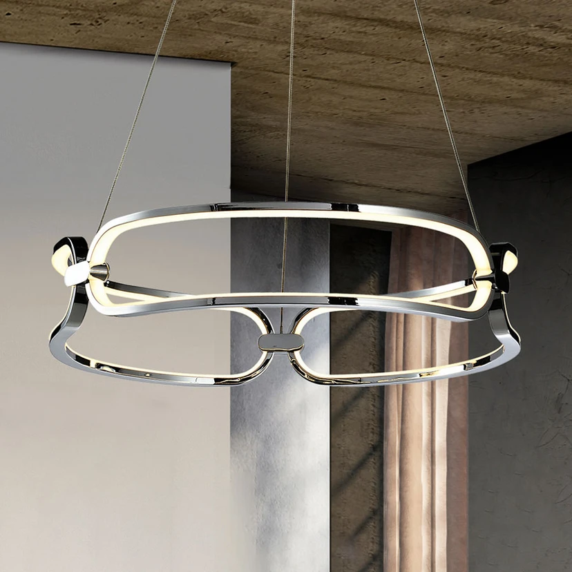 Einen dekorativen Blickfang für den modern gestalteten Wohnbereich stellt die dreiflammige LED-Hängeleuchte Colette dar. Sie besteht komplett aus Metall, das mit einem glänzenden Chrom-Finish veredelt wurde. Die schöne Spangenform der Schirmteile weckt Erinnerungen an eine Kette, deren Glieder miteinander verbunden sind. Die inneren Kanten sind mit leistungsstarken LEDs bestückt, die warmweiß strahlen und das Licht nach allen Seiten verteilen. Im Zusammenwirken mit dem chromfarbenen Finish entsteht eine glanzvolle Lichtwirkung.