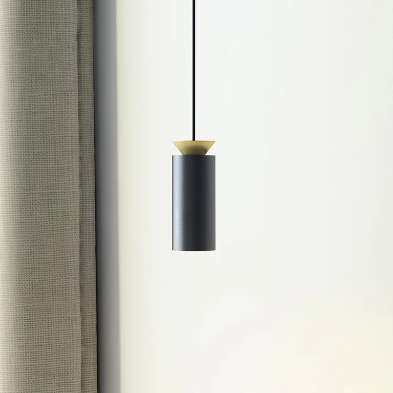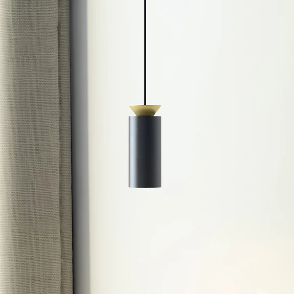 Über Tischen und Tresen in Wohnräumen, Restaurants, Geschäftsräumen und Hotellobbys bietet die LED-Hängeleuchte Triana eine zeitgemäße direkte Beleuchtung. Die Designer Joan Cinca und Dennis Park statteten die Hängeleuchte mit einem zylindrischen Metallschirm aus, der eine nach unten gerichtete GU10-Fassung mitsamt mitgelieferter, wechselbarer LED-Lampe beherbergt. Hinzu kommt ein kegelförmiges Element auf dem Schirm. Kabel und Baldachin sind in Schwarz gehalten.