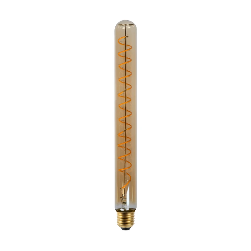 In dekorativer Filamentoptik präsentiert sich diese lange, röhrenförmige E27 LED-Lampe mit einem langen Kolben aus amberfarben getöntem Glas. Sie spendet eine besonders warme Beleuchtung und eignet sich für den Einsatz in Leuchten ohne Schirm oder in solchen, in denen das Leuchtmittel durch einen offenen Schirm sichtbar ist. Die Lampe ist dimmbar mit vielen handelsüblichen Dimmern.