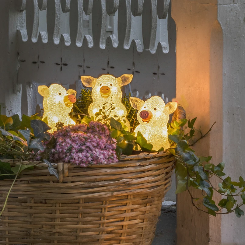 LED-Leuchtfigur Schwein, 5er-Set als Kette, klar