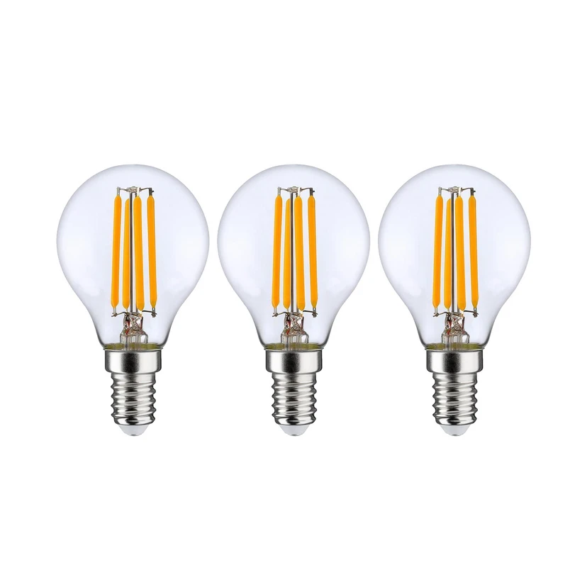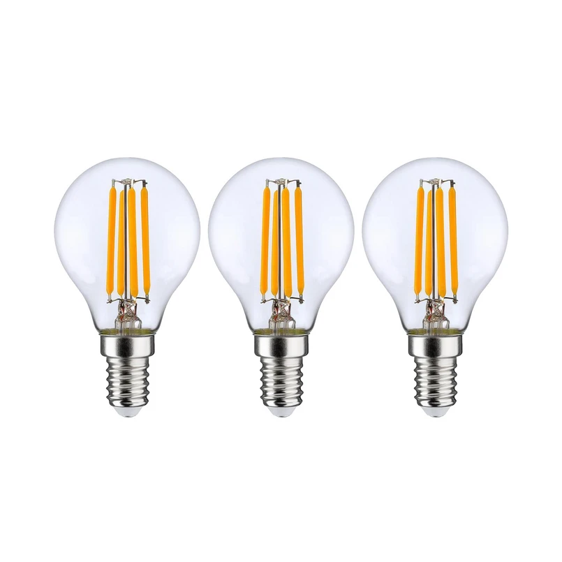 LED-Leuchtmittel E14 P45, 4W, klar, 2.700K, dimmbar, 3er-Set
