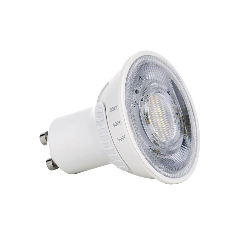 Dieser innovative LED-Reflektor GU10 bietet maximale Flexibilität und modernes Design in einem. Besonderes Highlight ist die CCT-Funktion, mit der die Farbtemperatur der Beleuchtung ganz nach den eigenen Bedürfnissen angepasst werden kann. Über einen integrierten Schalter am Leuchtmittel lässt sich zwischen den drei Farbtemperaturen (3.000K, 4.000K, 6.000K) einfach umschalten. So erzeugt man im Handumdrehen eine warme, gemütliche Atmosphäre oder ein helles, klares Licht für konzentriertes Arbeiten. Die Lampe ist zudem dimmbar und ermöglicht es, die Helligkeit stufenlos zu regulieren, um stets das perfekte Lichtambiente zu schaffen. Sie hat einen Abstrahlwinkel von 36°.